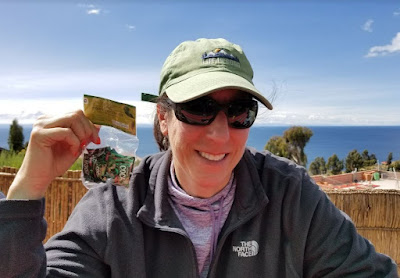 | Lunch spot and me holding "coco candy" supposed to help with altitude sickness. I was downing them like, well, like candy. |